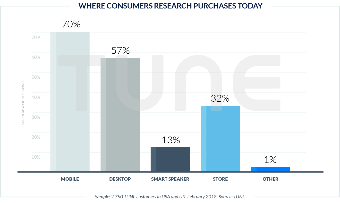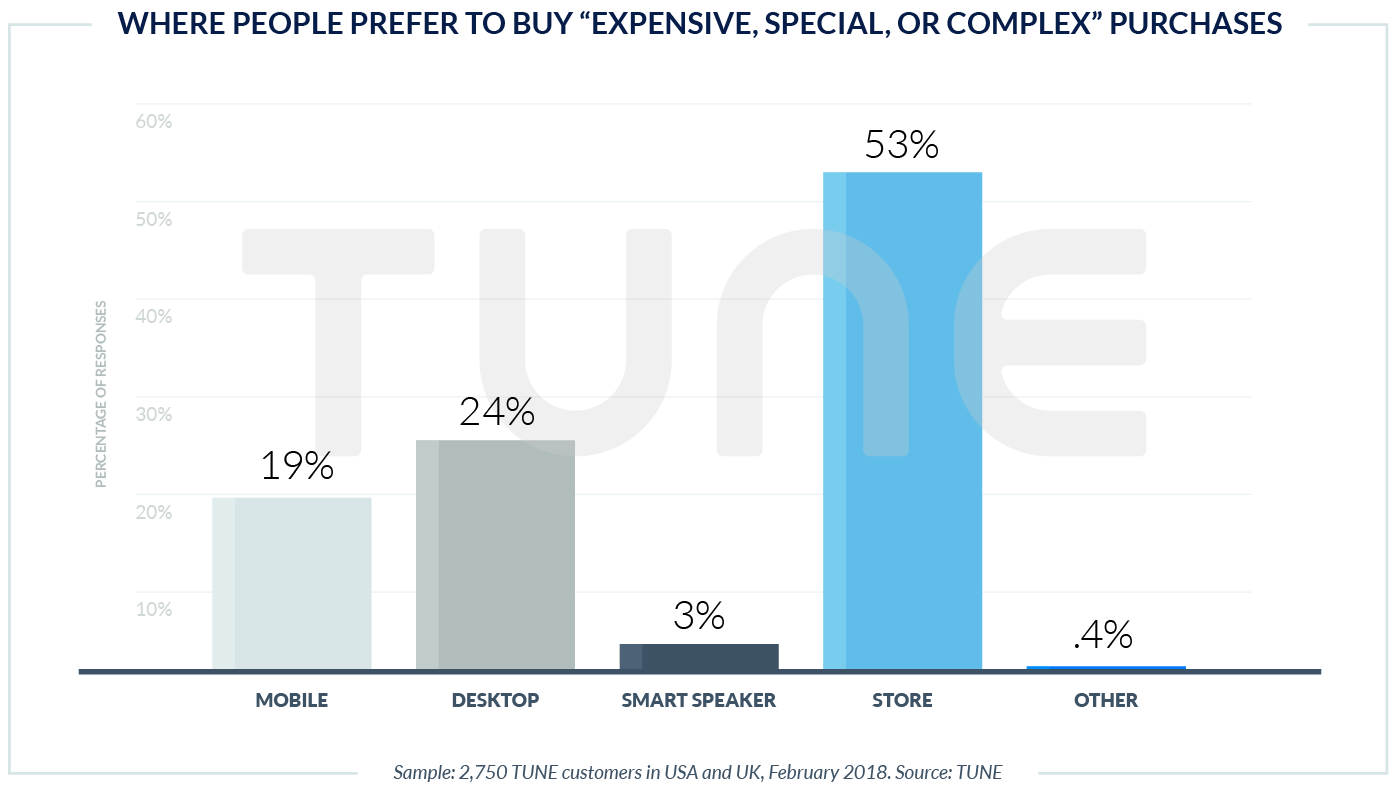 Around 44% of people ages 14 to 34 still prefer a store, while 34% prefer their phone, and just 3.8% picked a smart speaker.