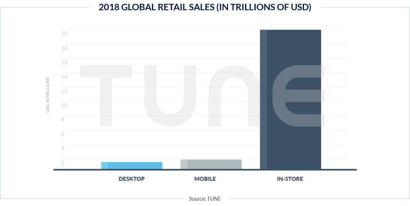 While total retail e-commerce sales will hit $2.8 trillion in 2018, total retail sales are in the neighborhood of $23 trillion to $25 trillion. So while massive growth rates are forcing retailers and brands to pay attention to both e- and m-commerce, the in-store story is also critical for success.