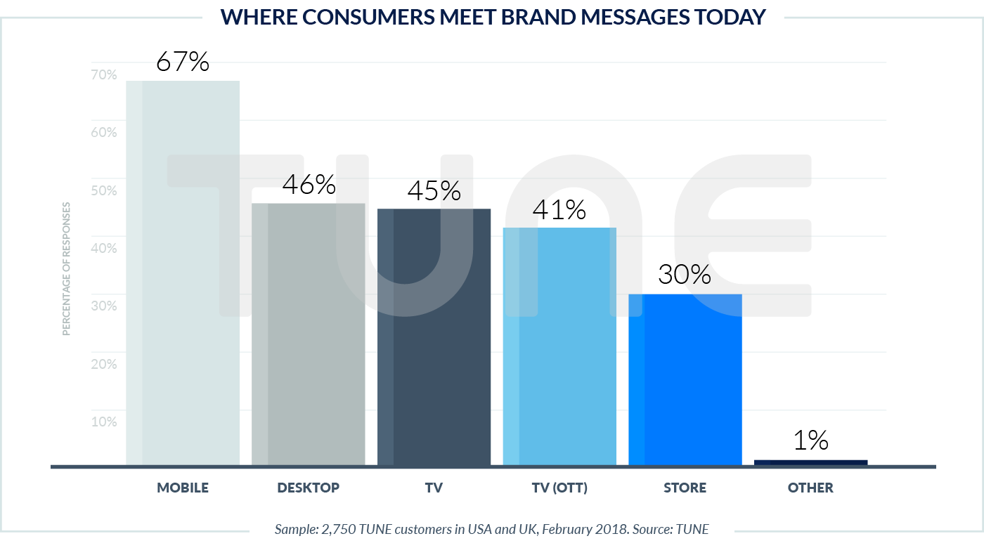 That’s reflected in our recent survey of 2,750 consumers in North America and Western Europe; 67% of respondents said they mostly see brand messages on their phones or tablets.