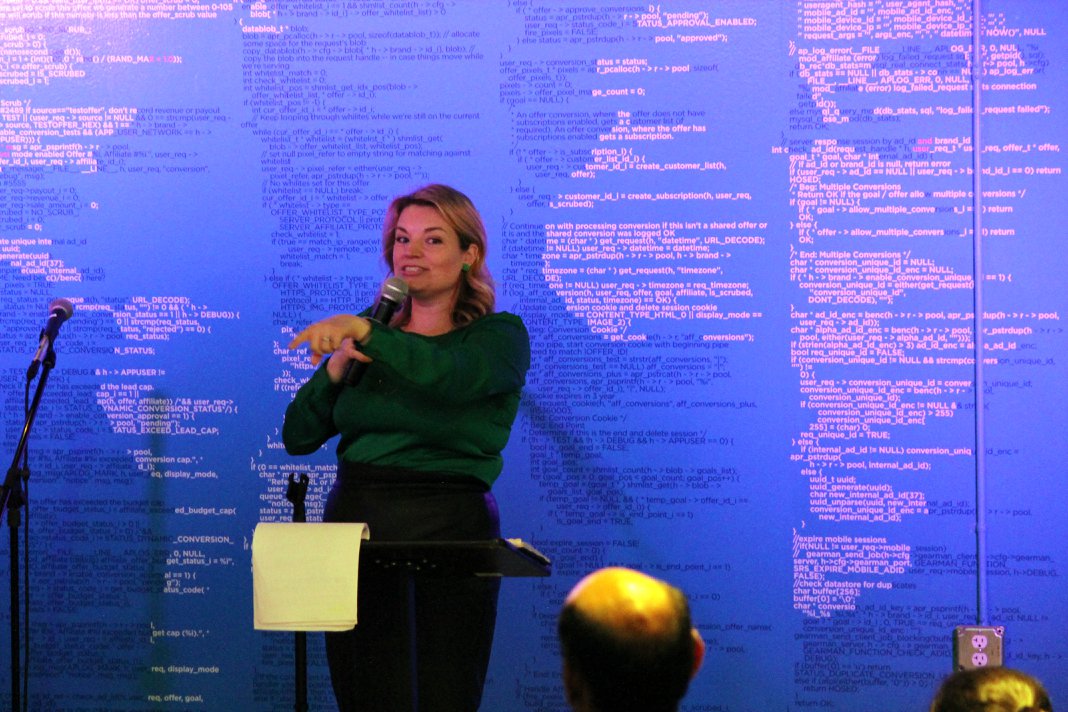 Sarah Bird, CEO of Moz was the evening’s keynote. She let the audience know this talk would be different from anything she had done before. She demonstrated vulnerability and shared personal stories about pivotal moments in her life that were shaped by the examples set by influential women like her mother, grandmother, the co-founders of Moz, and her career coach.