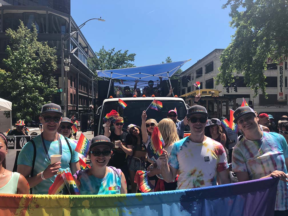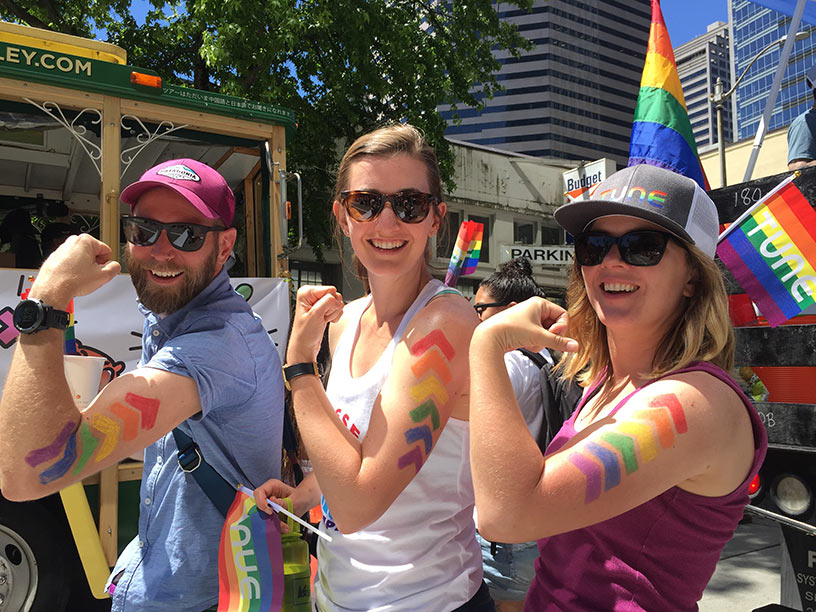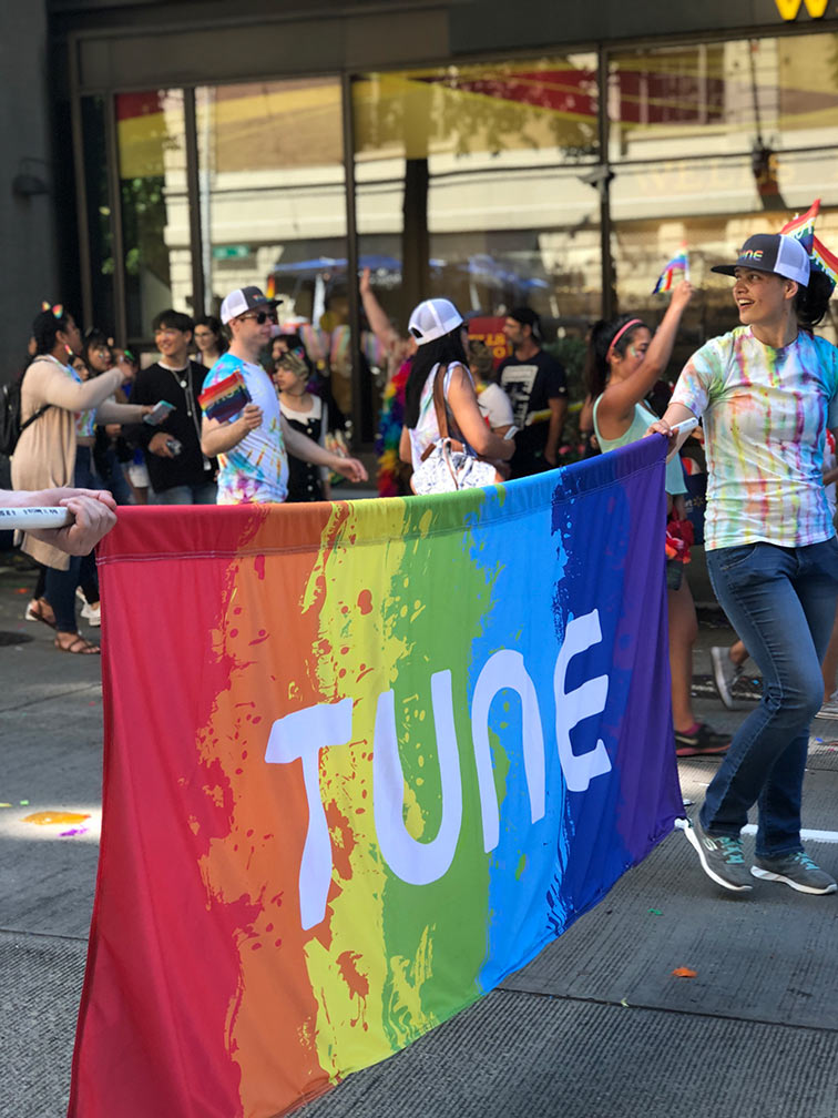 This year, more than 20 TUNErs, family, and friends made their way through the streets of downtown Seattle for the Pride Parade along with fellow companies, organizations and individuals who all shared the common goal of coming together as a community to support one another.