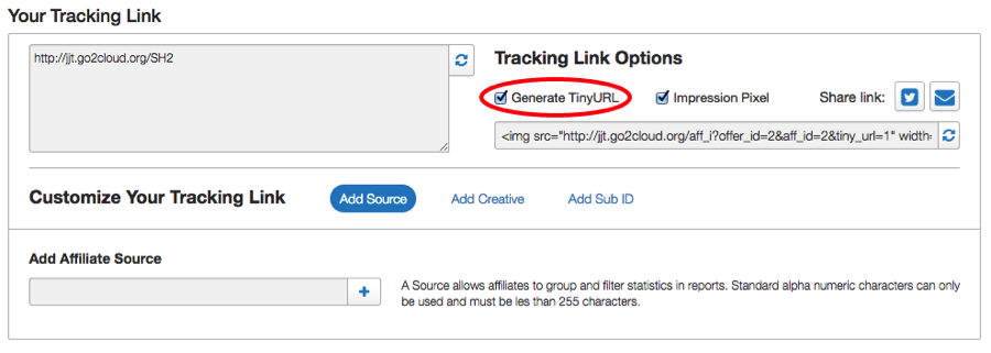 Tracking links can get a bit long and ugly by nature. There are multiple parameters on the end, and they can easily break when copied & pasted multiple times. To solve this and shorten your URL, you can use TinyURLs to place in your YouTube videos. Simply check the box for “Generate TinyURL” when you create your tracking link.