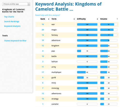 What you’ll see is a list of words or word phrases ranked by relevance (that’s what our Rank metric does — ranks keywords in order of relevance to your app), a volume metric (i.e., how often a word is searched in the app store), and a difficulty metric (i.e., how hard will it be to rank for this keyword). Many before you have lamented the confusing mess of information we expose you to in this tool. However, let’s break it down and simplify it. Keep in mind though that this data is a product of our clever algorithms serving as an approximation of what we think is going on in the app store.