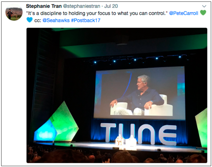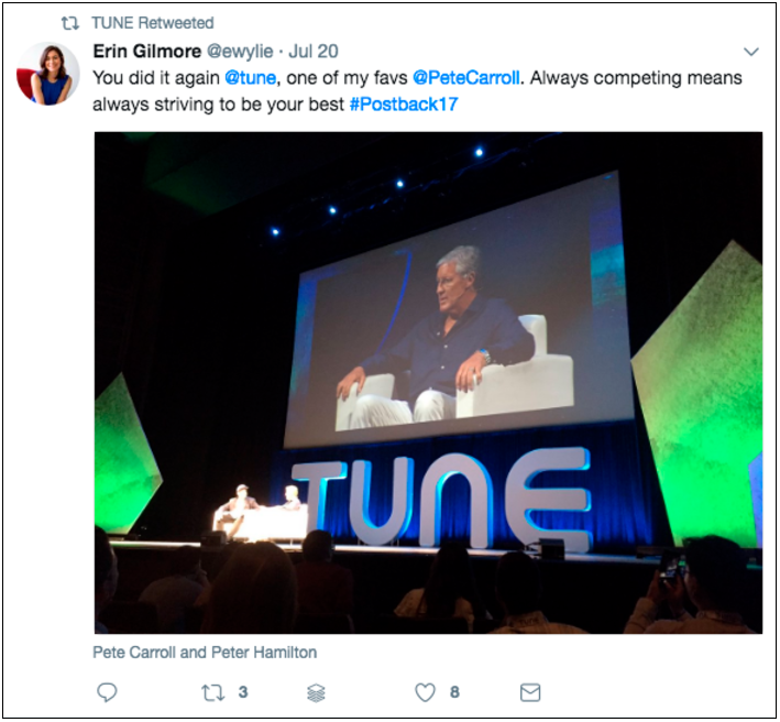 He may not be in mobile marketing persay, but there’s no denying Pete Carroll knows a thing or two about competition, leadership, and winning in one’s arena. Thursday afternoon, the head coach of the Seattle Seahawks sat down for a fireside with Peter Hamilton, CEO at TUNE to discuss how to perform at the highest level in one’s industry.