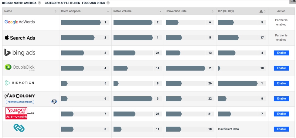 If you have an app in the food and drink category — or are responsible for marketing one — it’s important to know your best options for advertising partners. Not only will you be able to leverage the partners that other marketers in your specific category and region trust most, but you’ll be able to get new ideas for partners whom you may not have tried before, reach untapped pockets of prospective customers, and measure which partners drive the best results for you.