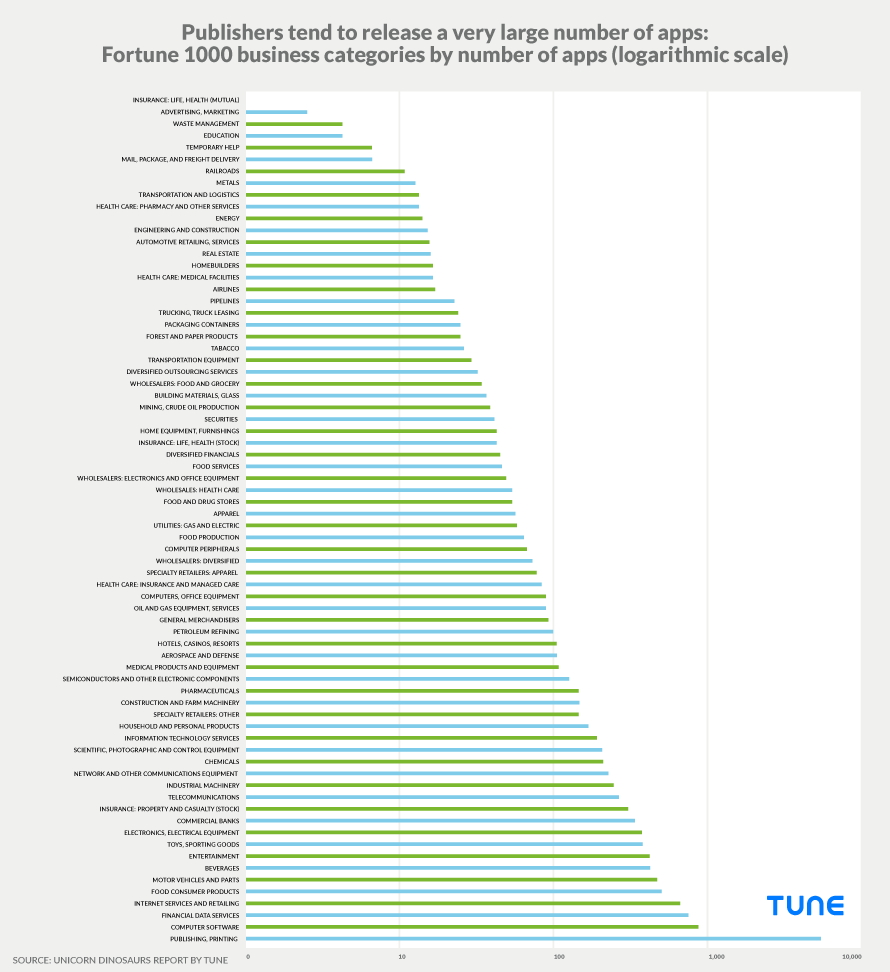 Mobile apps by Fortune 1000 business categories