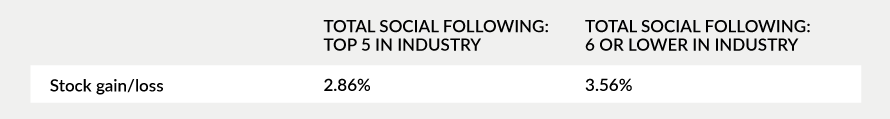 We then checked Google Finance 3- and 6-month trailing results, taken in February and June 2016, respectively, and checked 12-month stock value changes in October. We also gathered Yahoo Finance analyst buy/sell recommendations and CEO ratings at Owler. In addition, we searched Twitter and Facebook to find social followers for these companies and their subsidiaries.