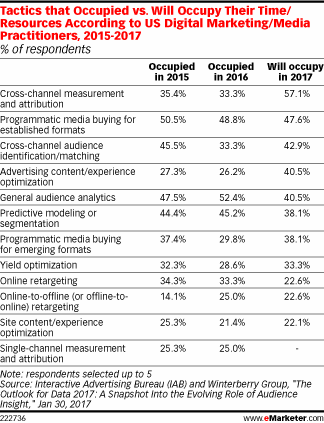 eMarketer says that 2017’s top priority for 57.1% of marketers is “cross-channel measurement and attribution.” In fact, it’s the only priority among 12 listed that more than half of marketers consider a key focus.